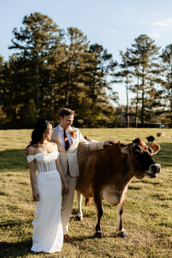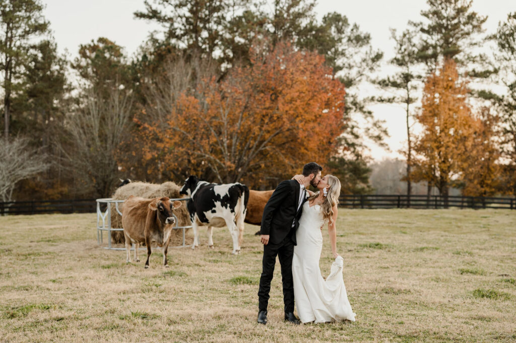 Cherry Hollow Farm is a barn wedding venue in Georgia. They have multiple barn animals and cows on the property which you can take photos with around the venue!