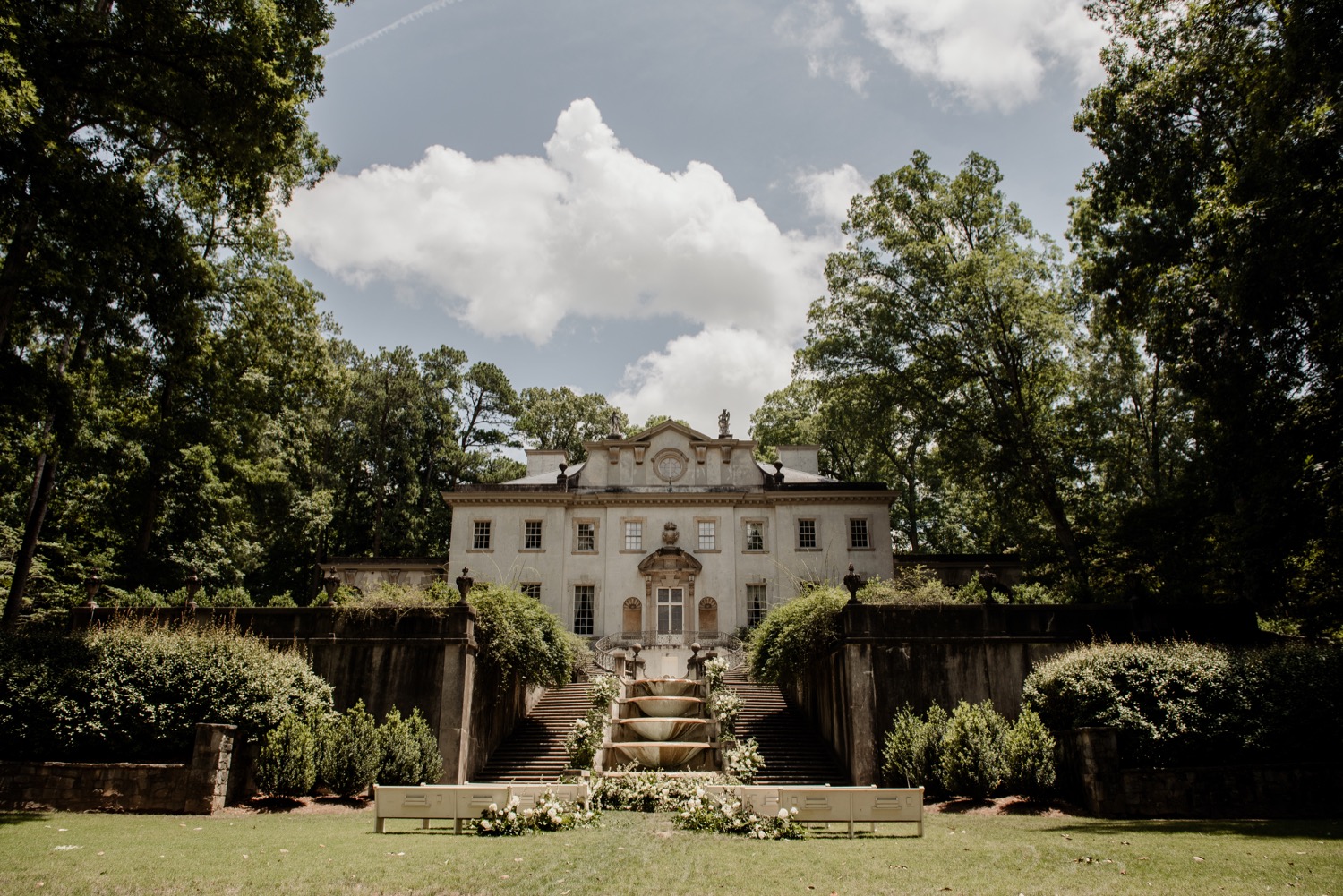 The Swan House wedding at Atlanta History Center is truly one of the most gorgeous, elegant venues in all of Georgia! The iconic 1928 mansion has a picturesque, grand staircase leading up from the lawn to the building where most wedding ceremonies take place. There’s ivy lined walls, cascading fountains and stunning gardens that are a photographers dream.